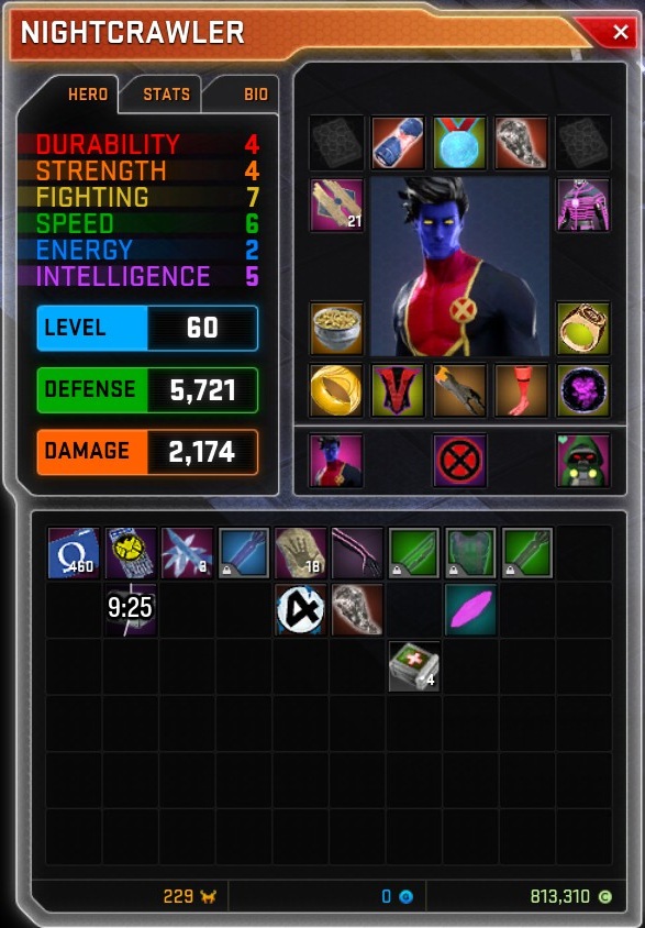 So Scarlet Witch’s level 30 Synergy bonus is a +2% bonus to damage over time effects, increasing to 4% at level 50. Once she’s level 50 I can login with Nightcrawler and use one of my Synergy slots to get that bonus.