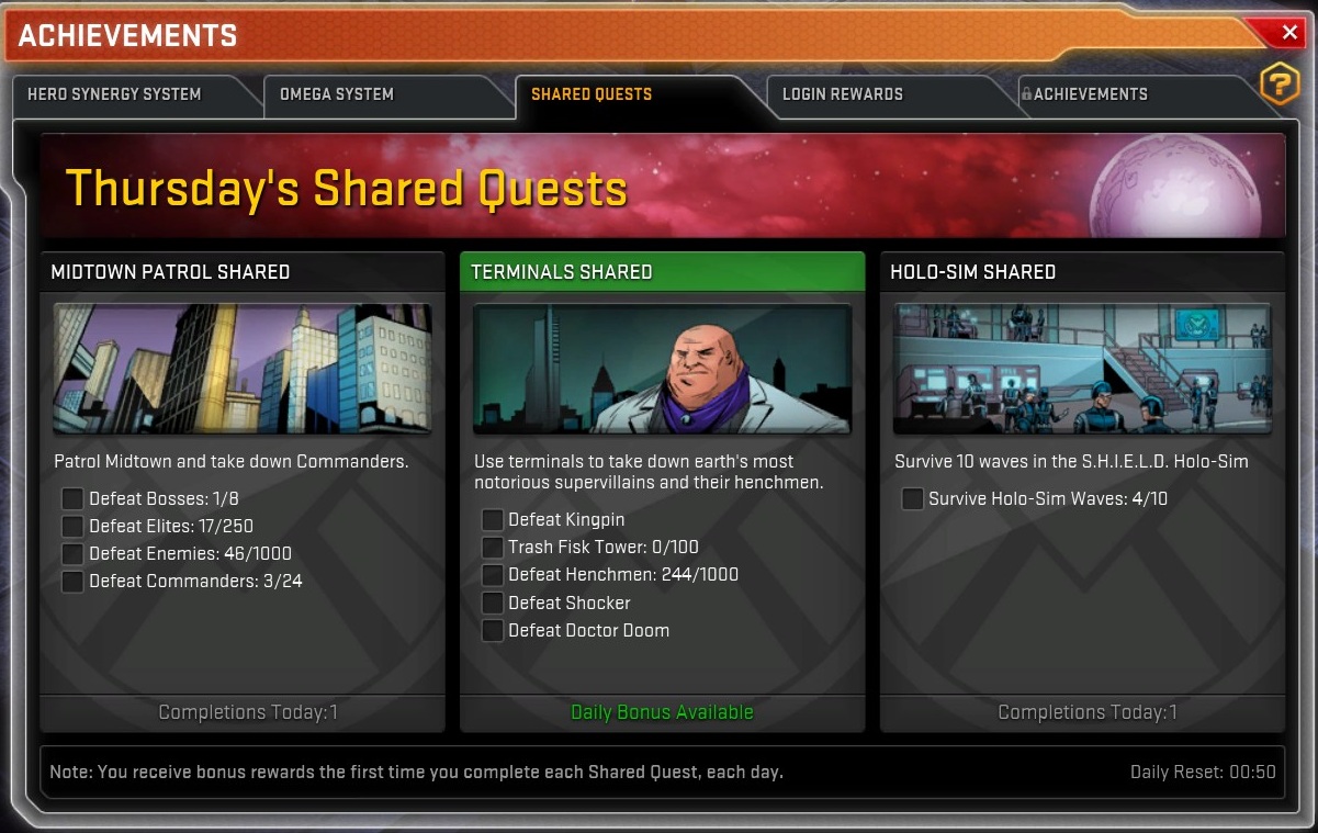 Obviously some Synergy bonuses are better for some characters than others (and some are just generally awesome; Cyclops gives a bonus to XP gain and Deadpool gives a bonus to item find) so you’ll want to pick and choose.
