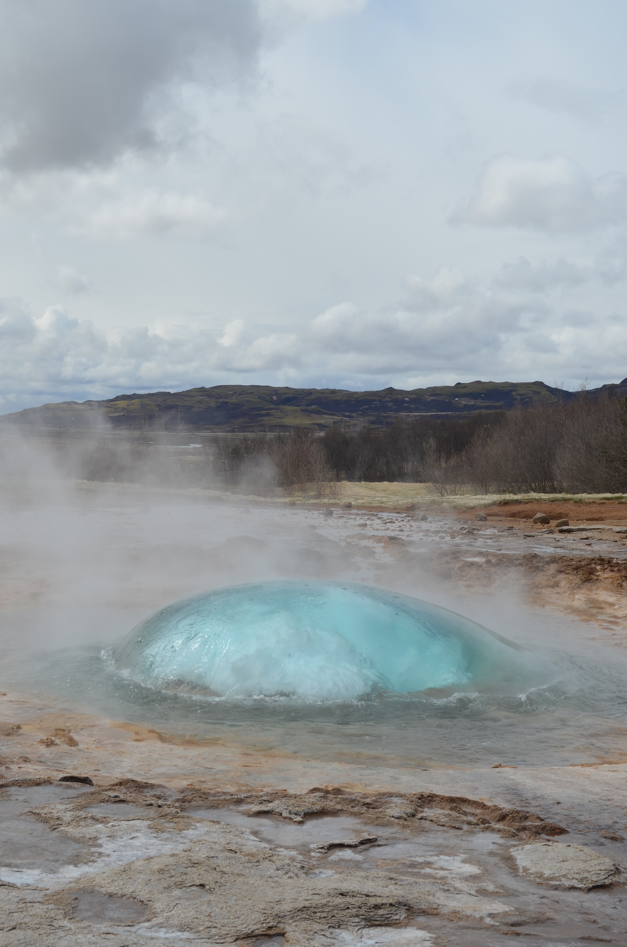 The main attraction of this area of geothermal activity was the Strokkur geyser that erupts every 8-10 minutes. We watched this occur a few times and got ring-side seats every time. We stayed upwind of it and were able to watch a few people get drenched who either fancied a mineral-shower or didn’t understand how wind works.