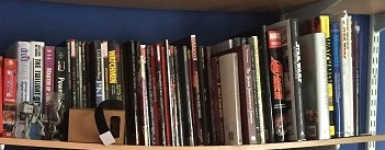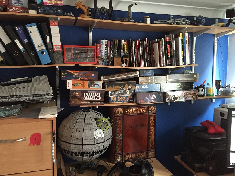 Books. A combination of graphic novels, film books, PowerShell manuals and RPG books. Just out of sight; Portal themed book-ends; a present from my daughters 😀