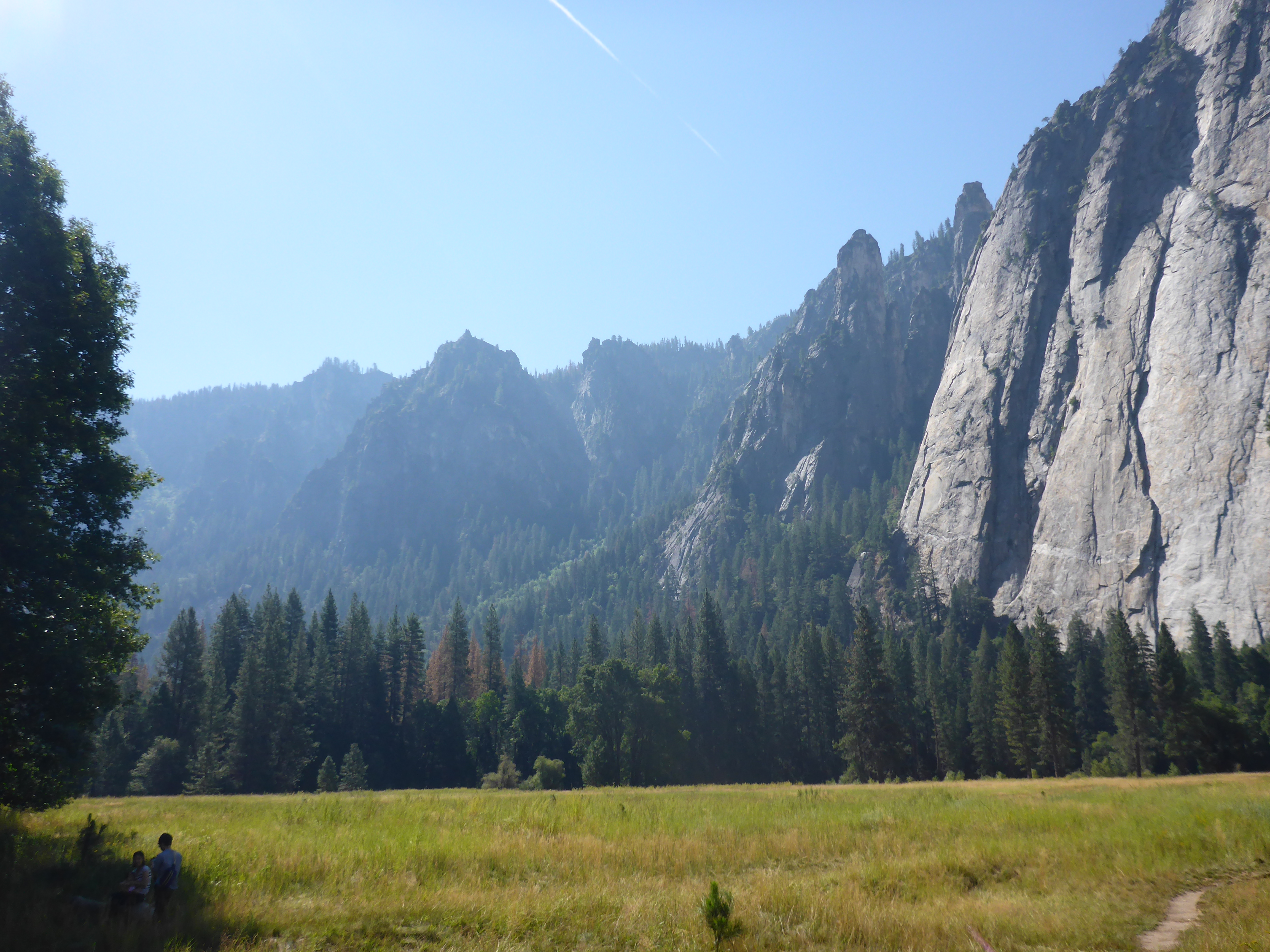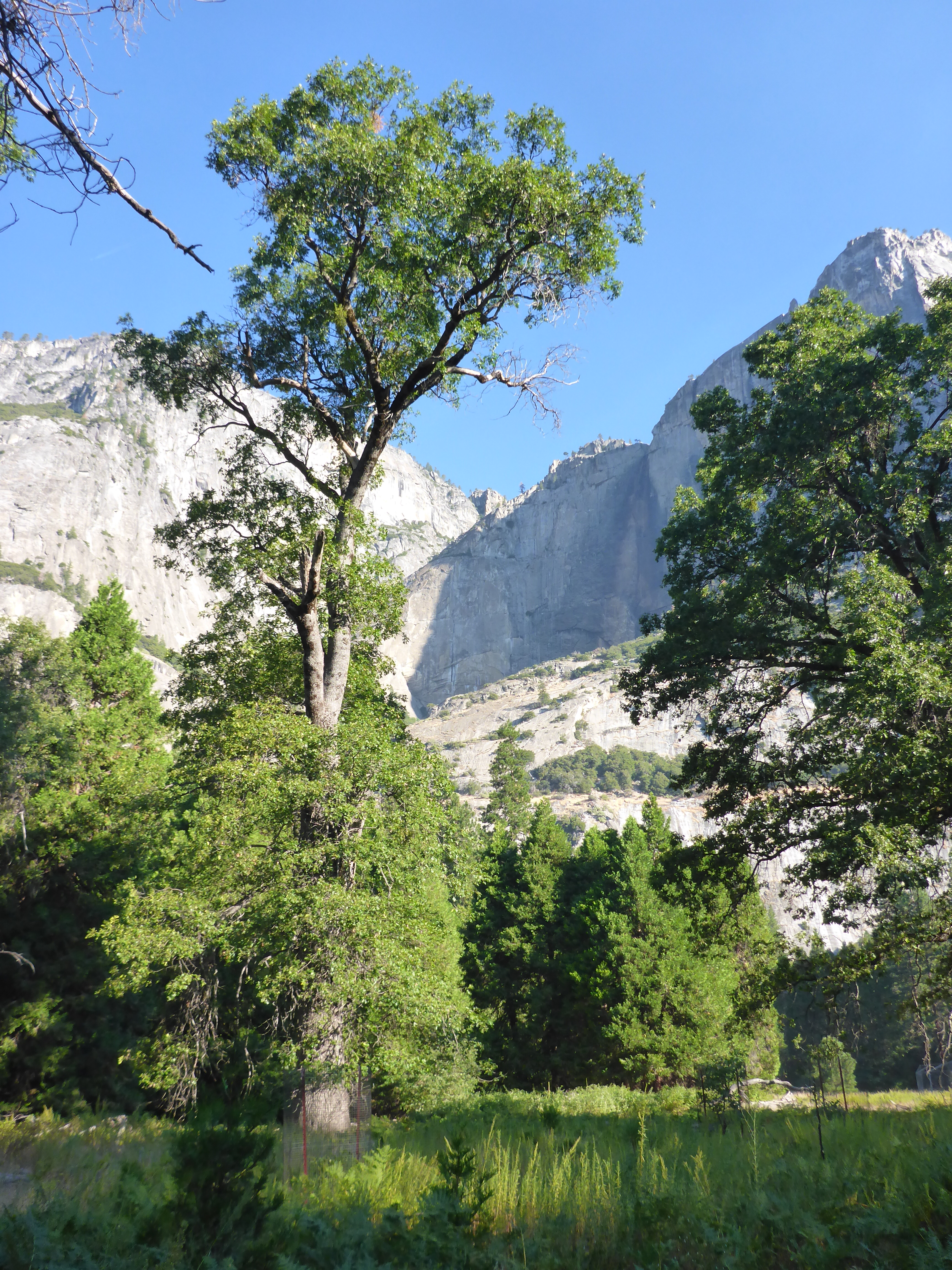 We walked through a meadow (seeing the Half-Dome) before heading up to the lower falls; like many of the rivers and falls they were dry due to the drought.