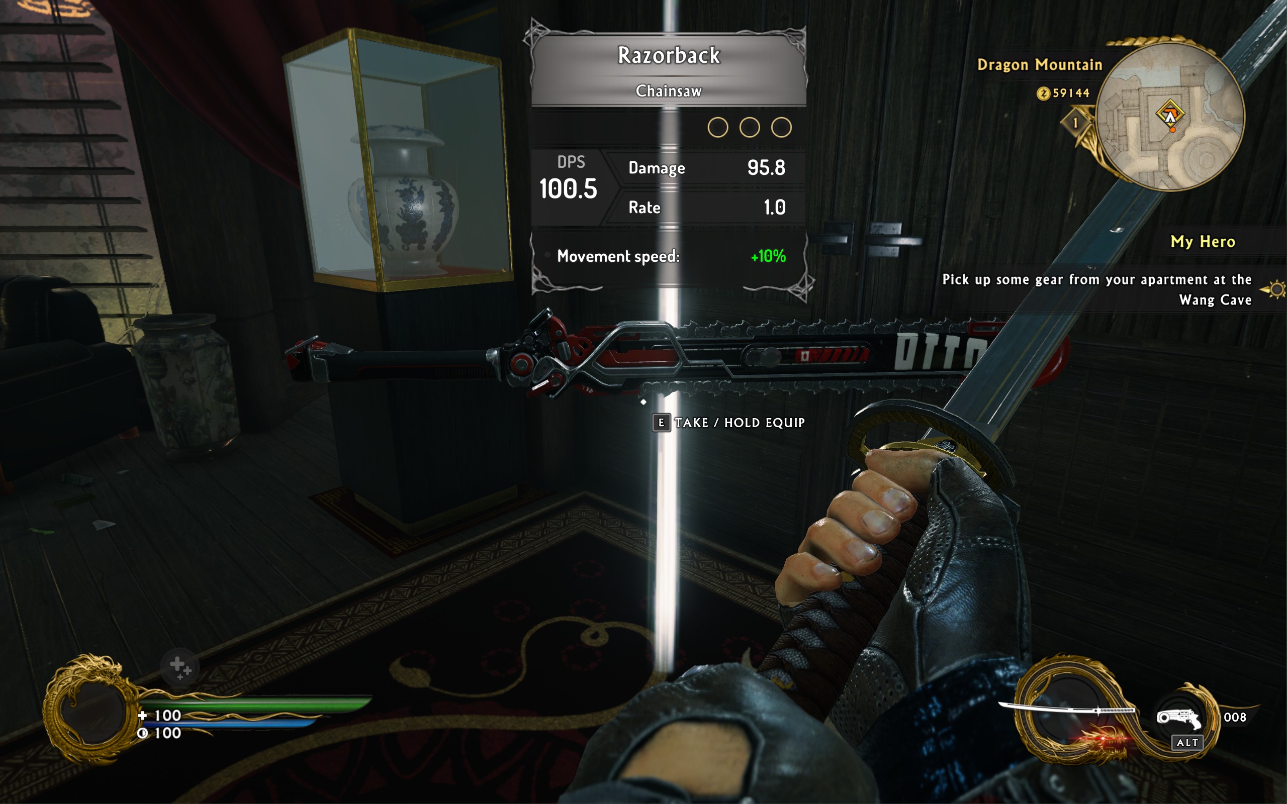 The devs banked on the fact that you wouldn’t mind the occasional repetitive or bland piece of random level design as the combat would be so much fun. They were correct too; the combat is great. The whole range of weapons I’ve seen (there are 70 or so in the game) work well and mean you have to mix up your gameplay depending on the enemies (I’m playing on Hard). On the other hand you can barrel in with any of them and feel like a total death-machine too. So while you have to be a little careful with some elite monsters on the harder difficulties, there’s plenty of opportunity to jump into the middle of a group of ninjas and chop them up with a chainsaw-katana (yes, really).