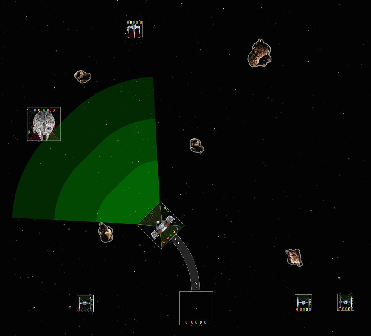 Han was the better pilot, so he moved last. Everyone could freely discuss their moves (you couldn’t show anyone the exact move you’d picked though) and he made it clear he was continuing his flank. Boba had randomly decided to chase him now and so he wanted to get clear.
